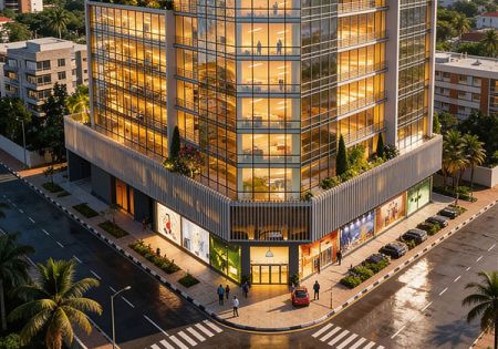 Decouvrez un ensemble architectural de prestige (R+9) alliant commerces de luxe et bureaux de haut standing au cœur d'Abidjan.